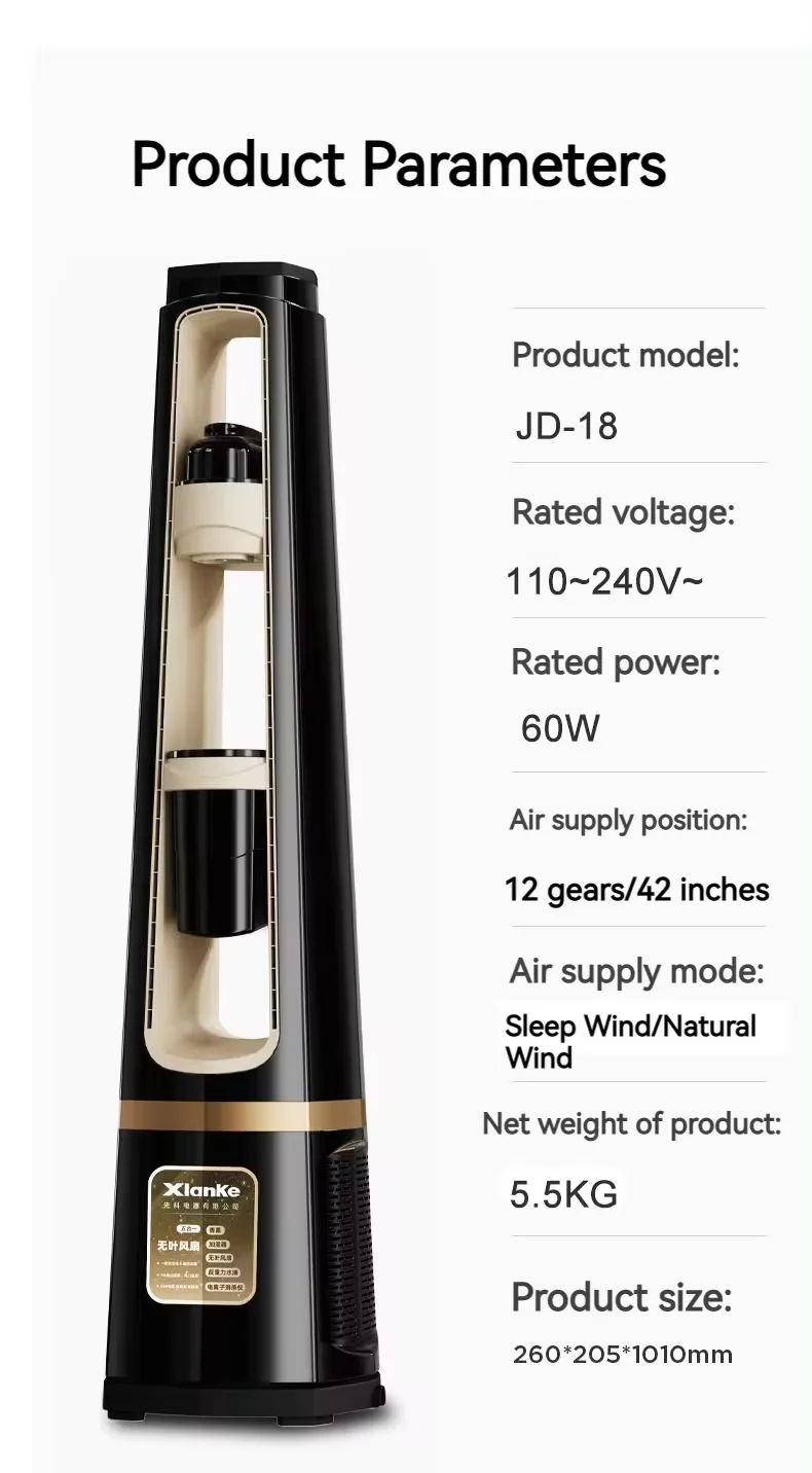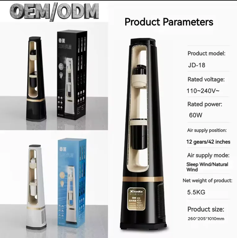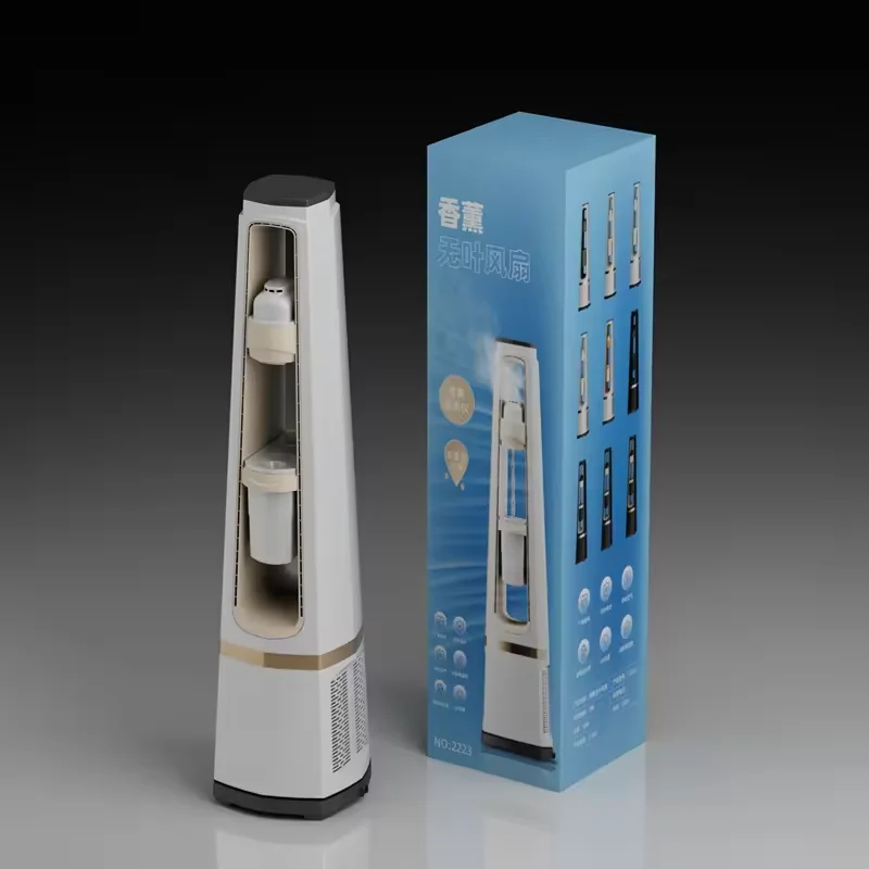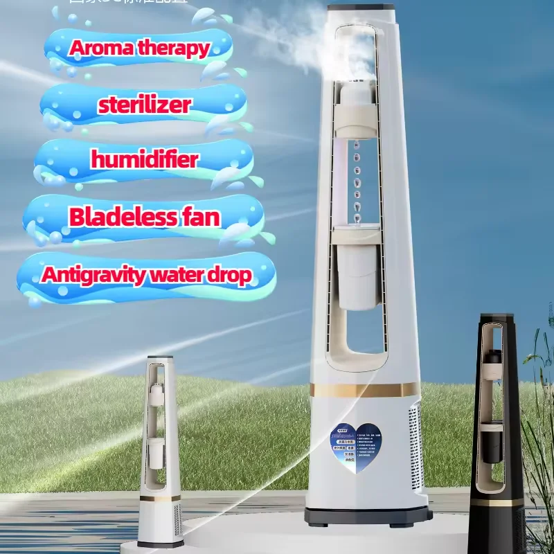 New Design 5 in 1 Bladeless Fan Cooling Electric Mist Stand Fan Floor Tower Fan with LED Remote Control and Humidifier